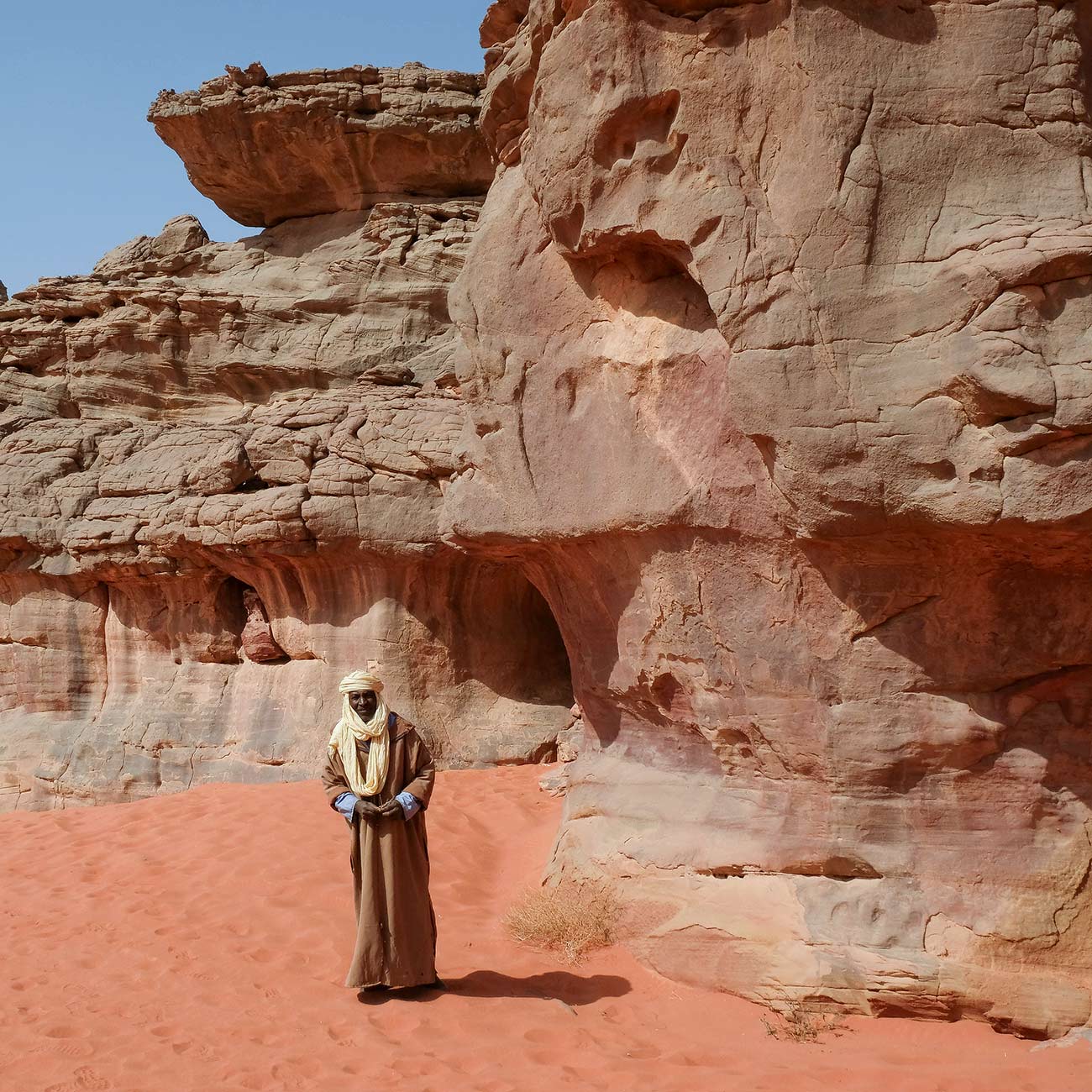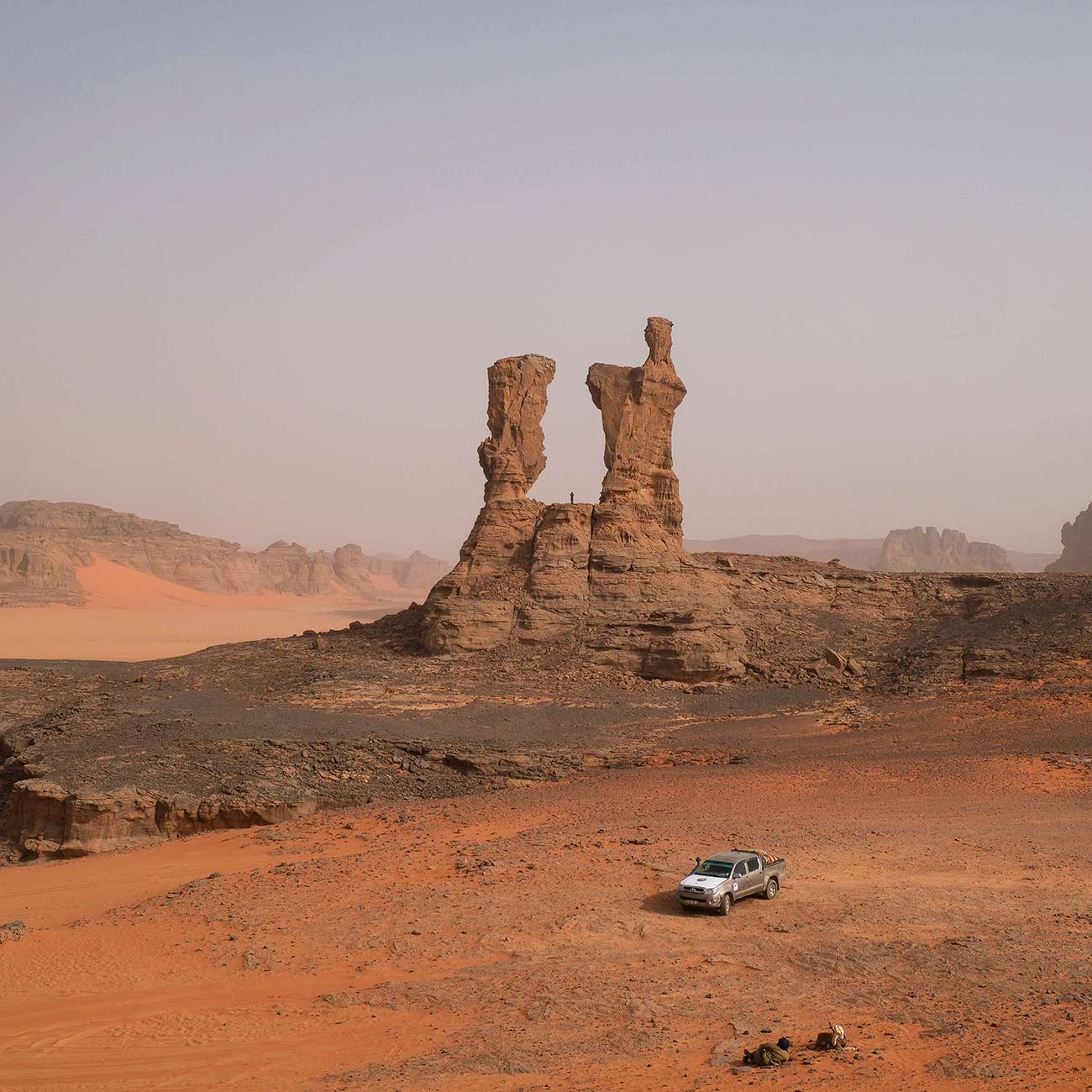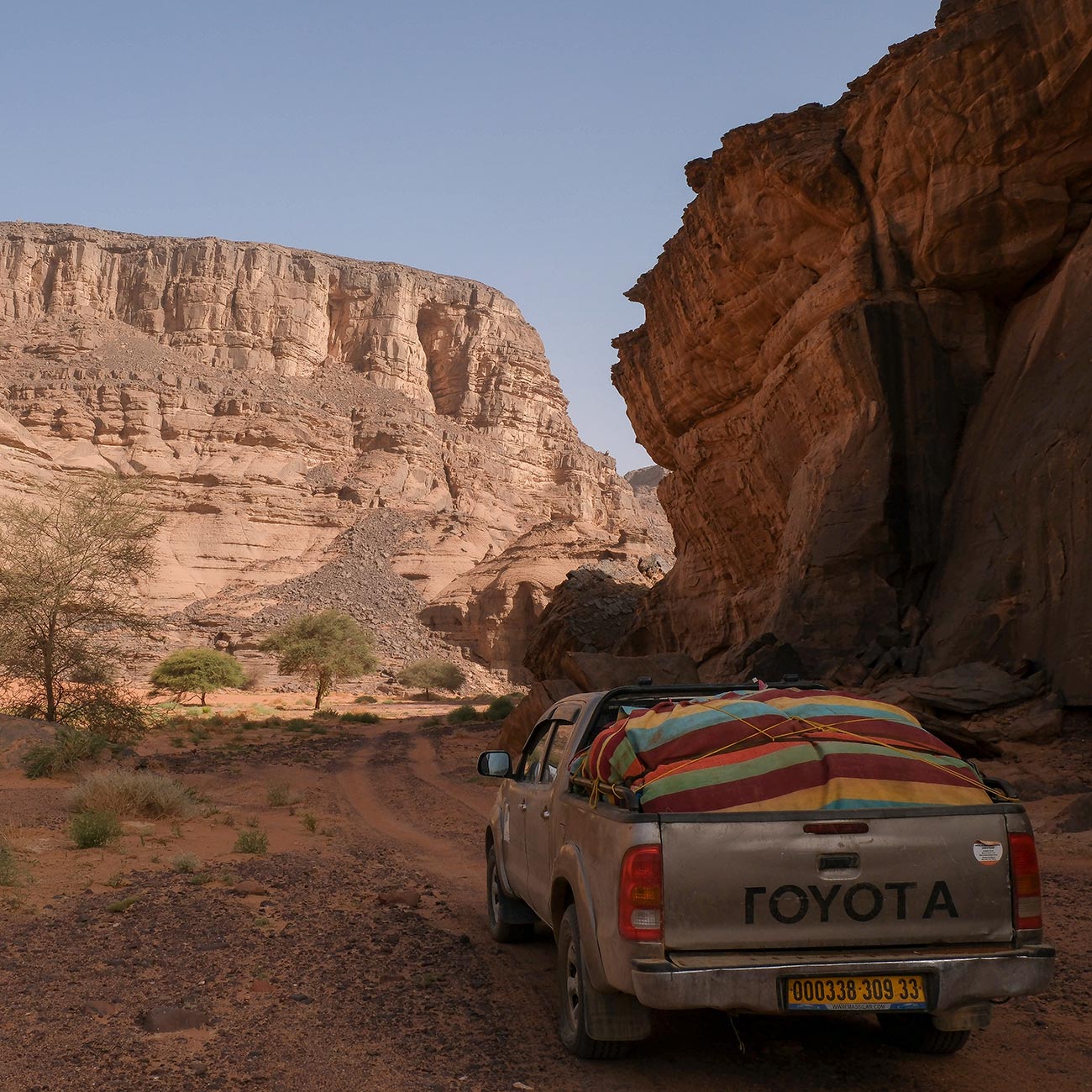 Começamos a aventura por In Jern explorando vales e desfiladeiros impressionantes. Pelo caminho, uma verdadeira aula de história com as gravuras rupestres de In Ahar, onde se destacam girafas e elefantes talhados na pedra há milhares de anos. Ao final do dia, chegamos a Moulay Nga.