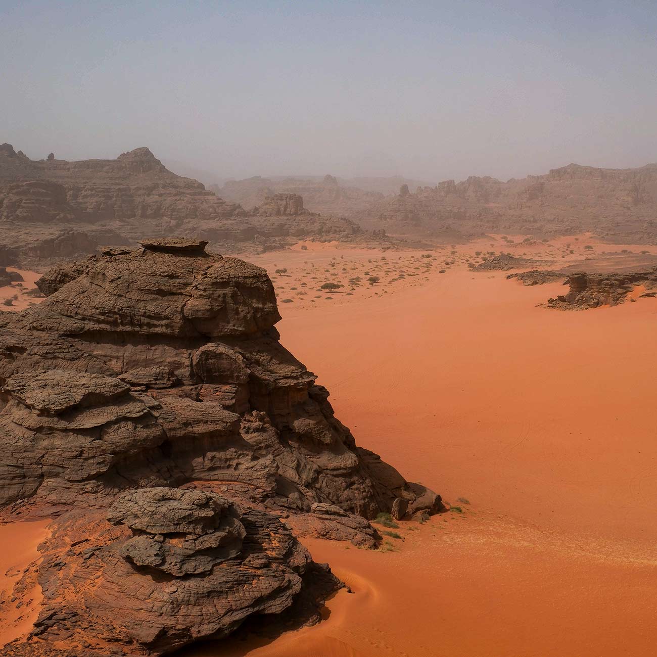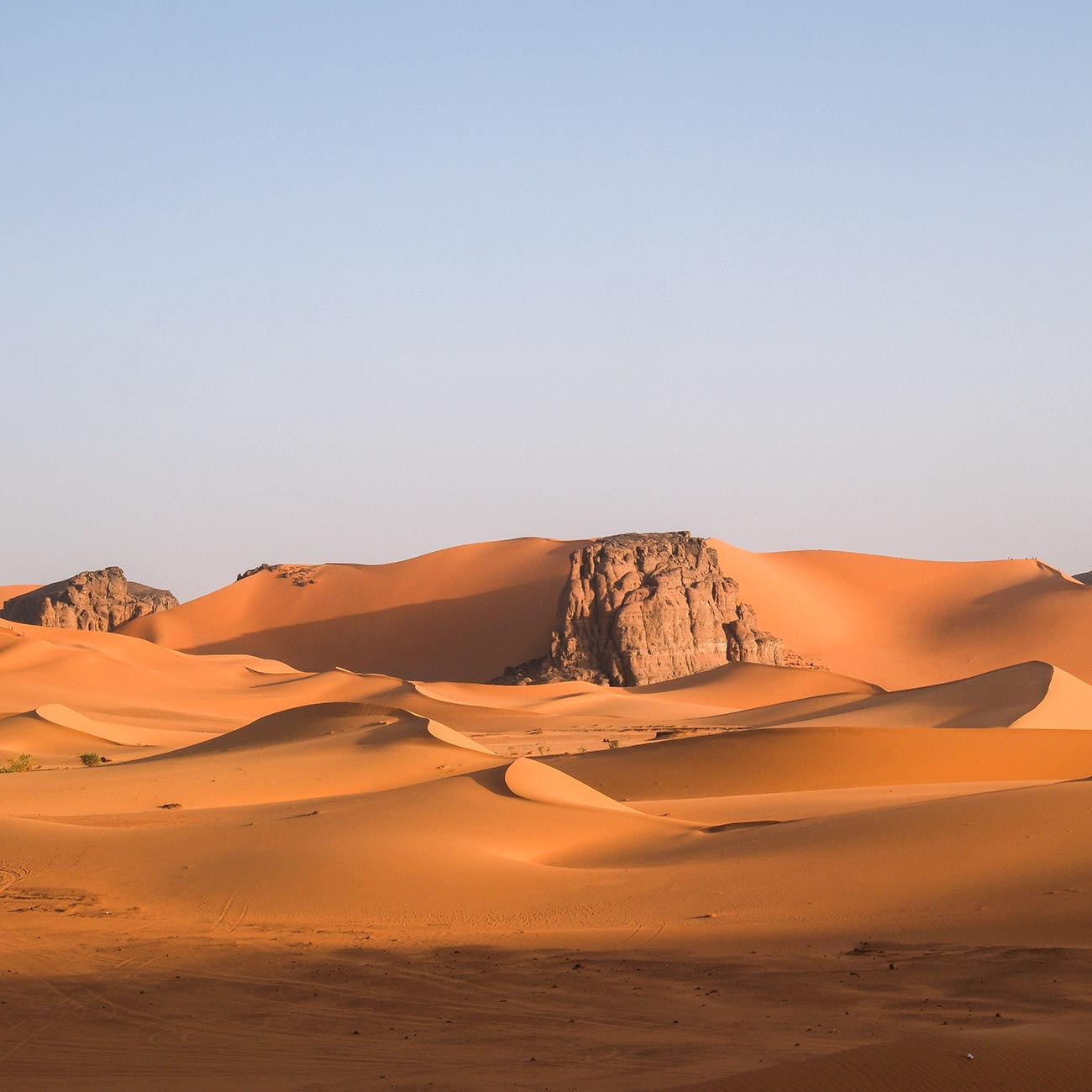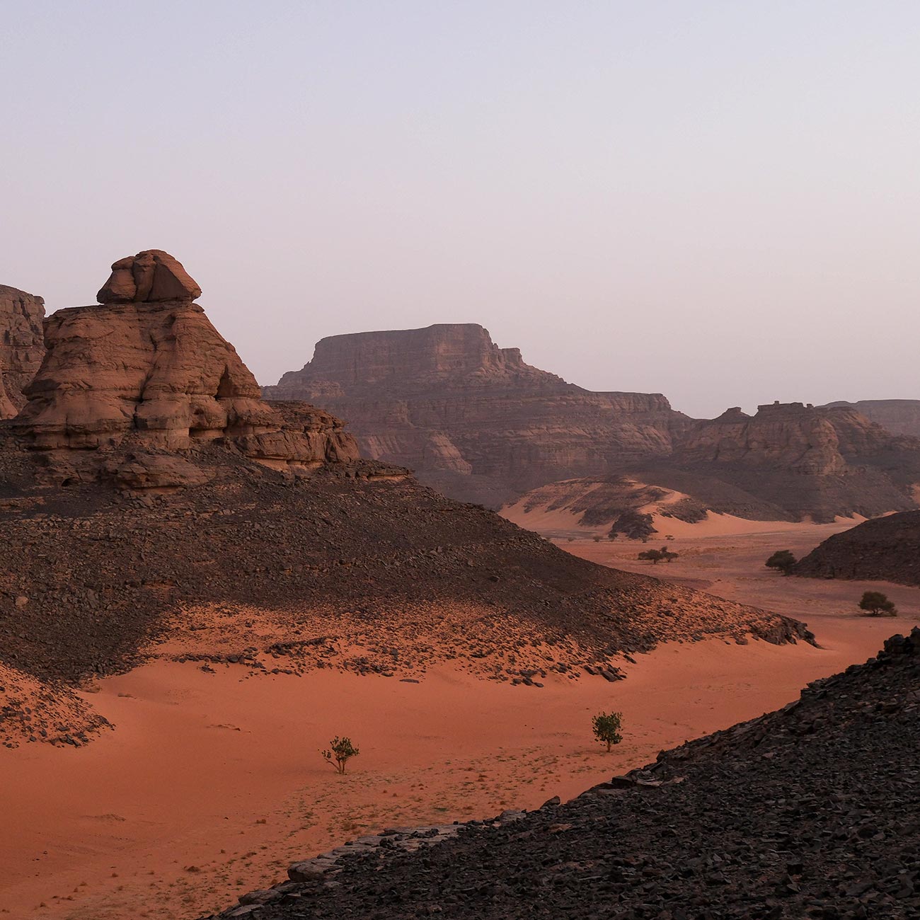 À tarde deixamos Tadrart em direção a Tassili Monhour, onde largos caminhos de pedra e grutas se escondem entre ruas de areia. Seguimos ainda pelas dunas de Erg Admir até ao Vale de Tfassat, local de acampamento sob um dos céus mais estrelados do planeta.